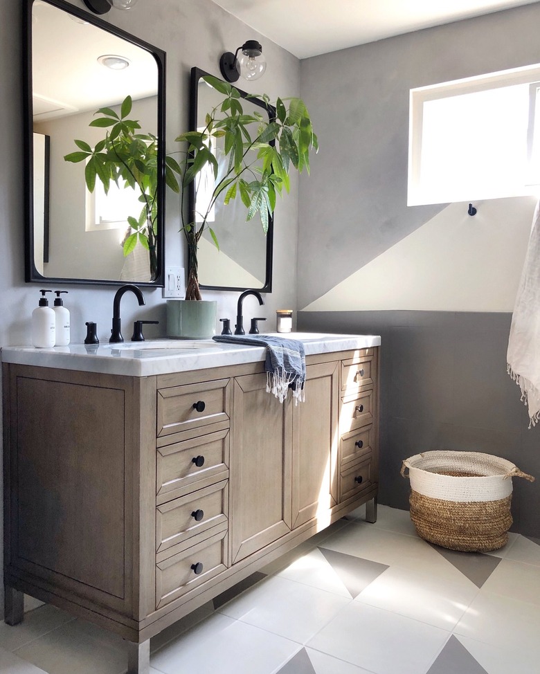 It takes a lot of resources to produce new bathroom tile, which is why Kristin Dion of Kristin Dion Design says updating your bathroom floors with floor paint is an eco-friendly trend she can stand by. "Instead of gutting a bathroom, I recently used Rust-Oleum HOME Floor Coating to revamp the outdated floor tiles," she says. "Creating a sustainable home is important for the environment, and it's often more budget-friendly."