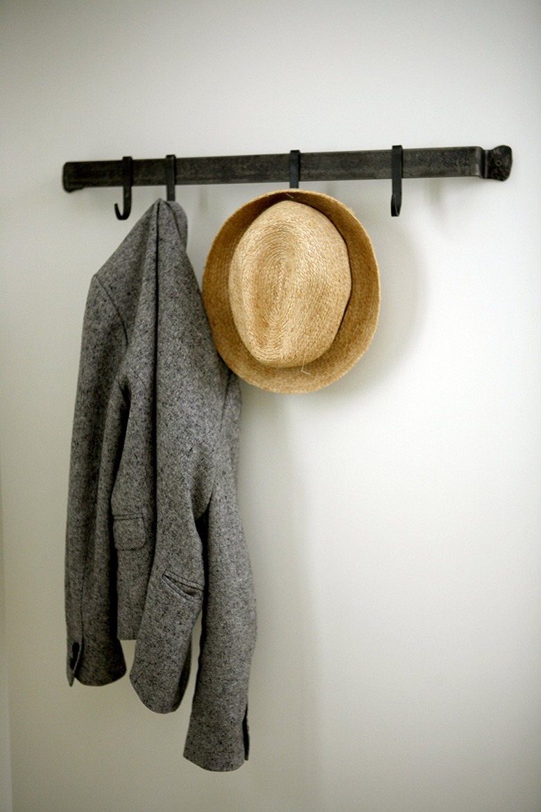5. Install rustic hooks that work as wall decor.
