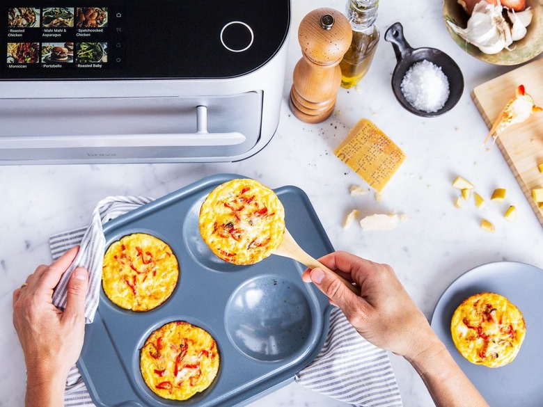 Every Brava Oven comes with a TempSensor (a thermometer that can help with meat and fish) and a Brava Plus Membership for two years, which is in the form of a phone app and can help you brainstorm recipes, troubleshoot any issues, or chat with other Brava users. There are also three options when purchasing the oven: The Starter Set ($1,295) comes with one metal tray and one glass tray; the Bake and Breakfast ($1,495), which comes with two metal trays, two glass trays, one muffin tin, one square pan, one loaf pan, and one egg tray; and the Chef's Choice ($1,695), which comes with all of the aforementioned plus a Chef's pan.