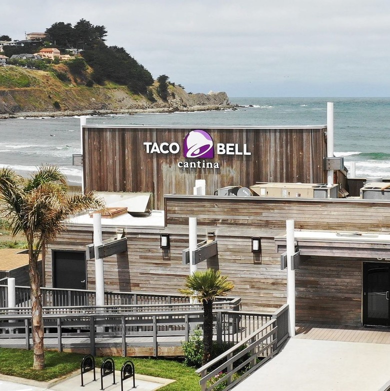 Yes, that is a beachfront Taco Bell with a surf shack vibe. Inside you'll find lofted wood-beamed ceilings and a glass fireplace, and outside there's a patio with beautiful views of the sea. Oh, and did we mention this is actually a Taco Bell Cantina? That means it serves alcohol!