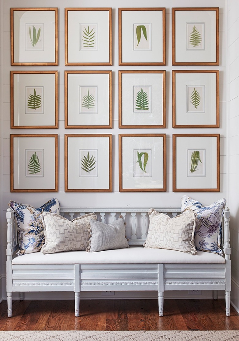 We love gallery walls, and they're always a great idea for traditional entrance halls or corridors. But why not create an even more stunning first impression with a fabulous Victorian-inspired bench and complementary prints that feature ferns and greenery like interior designer Maggie Griffin did here?