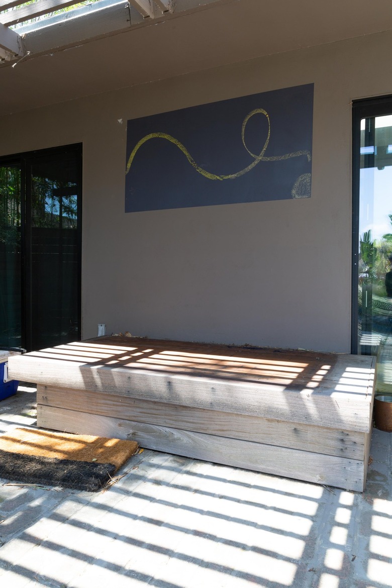 The original spot was hardly welcoming. The daybed platform had come with the house, but Eve and her partner had never given it much attention. Before we could get started, we needed to sweep and clean the surfaces we'd be painting, making sure they were free of dirt, leaves, cobwebs, and other signs of neglect. Once that was done, the fun began.