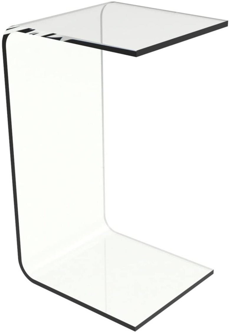 A see-through, C-shaped end table can be a game changer for a small room. Not only does this clear plastic take up little visual space, its smooth edges and slim frame ensure it can fit into a tight area.