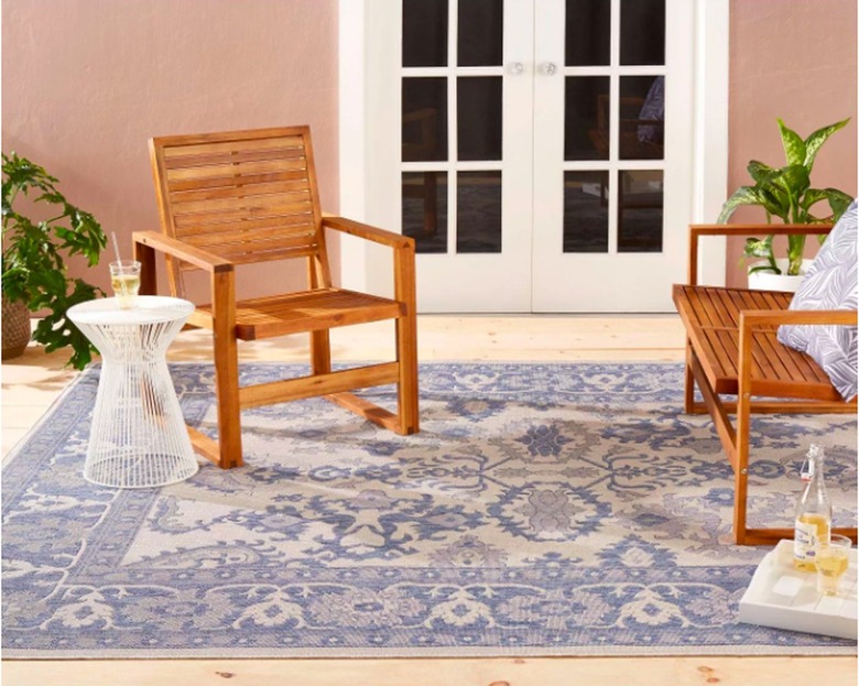 Don't forget about your textiles — both the large and small pieces. There are plenty of ways to create a relaxing atmosphere with the right decor items. While we're seeing lots of statement rugs indoors, your outdoor design can be a fun opportunity to go with something timeless.