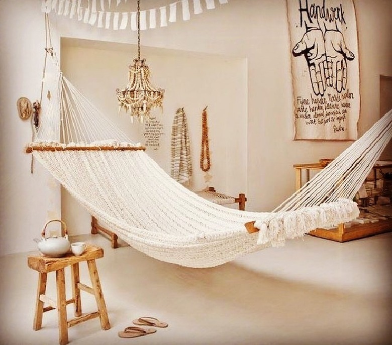 With temperatures continuing to rise, all we want to do is spend our free time lounging on a cute hammock — indoors or outdoors, we're not picky! This desire was further encouraged by all the cute hammock decor ideas we've been seeing on Instagram. Have no clue what we're talking about? Get ready to feel inspired.