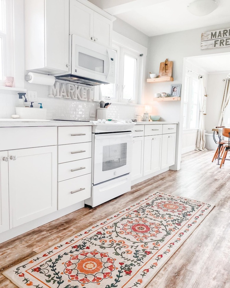 Cottagecore in the kitchen? Yes please. With delicately drawn petals and vines, this floral rug will brighten up and add more life to your cooking space. Even if your kitchen is more of a large closet with heat, no problem: Opt for one of the runner sizes (2.5 x 7 or 2.5 x 10) to still give off those traditional-chic vibes.