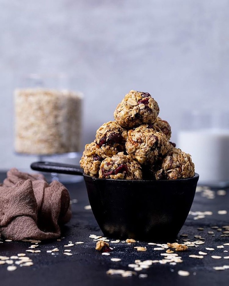 Not only do these energy bites call for zero baking, but they're also perfect for snacking on the go. Make a large batch and freeze them so you always have healthy treats on hand.