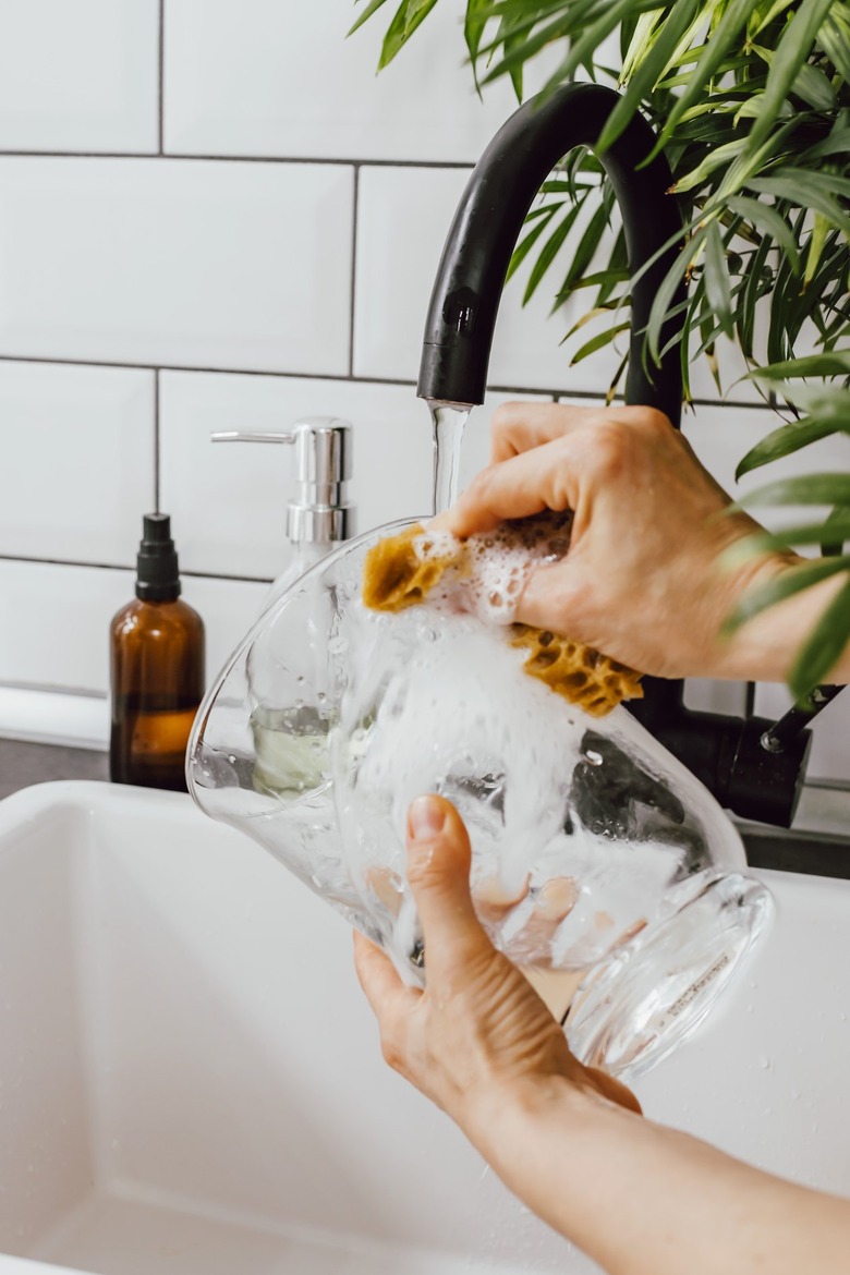 Pick out your vessel — like a simple jar or a pretty pitcher — and wash it with hot soap and water. Bacteria is your nemesis for keeping flowers fresh, so be sure that the container is clean.