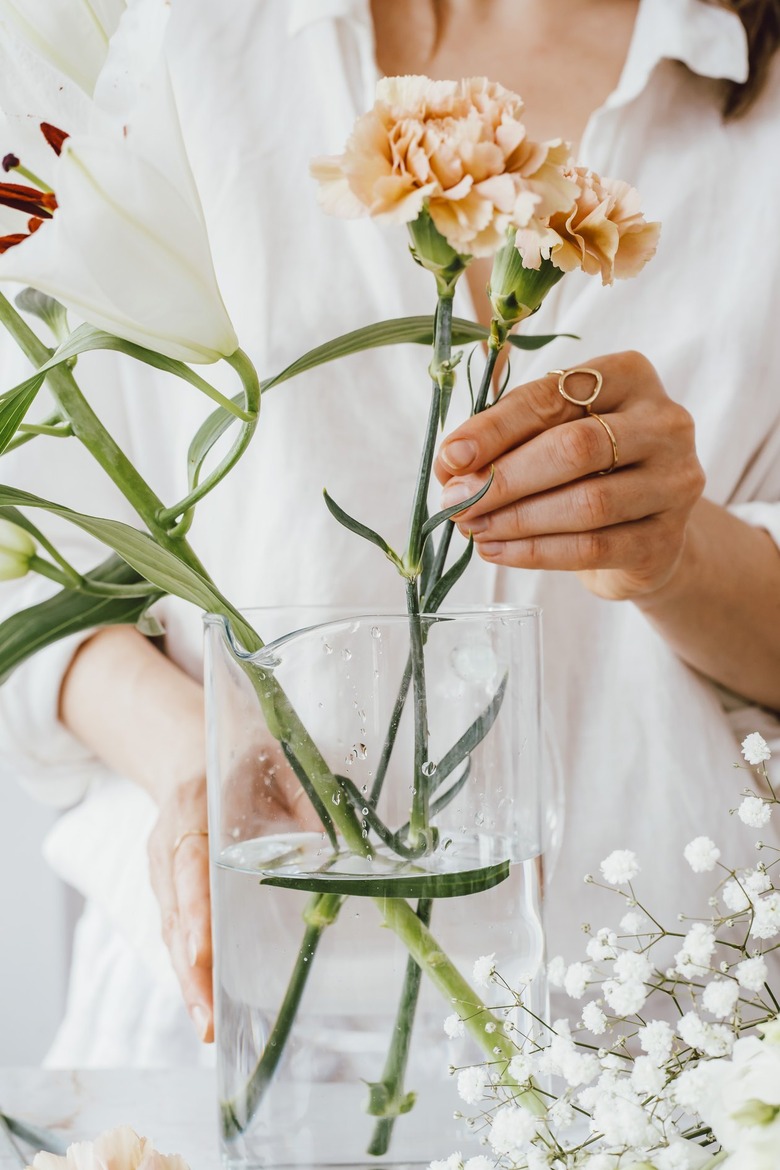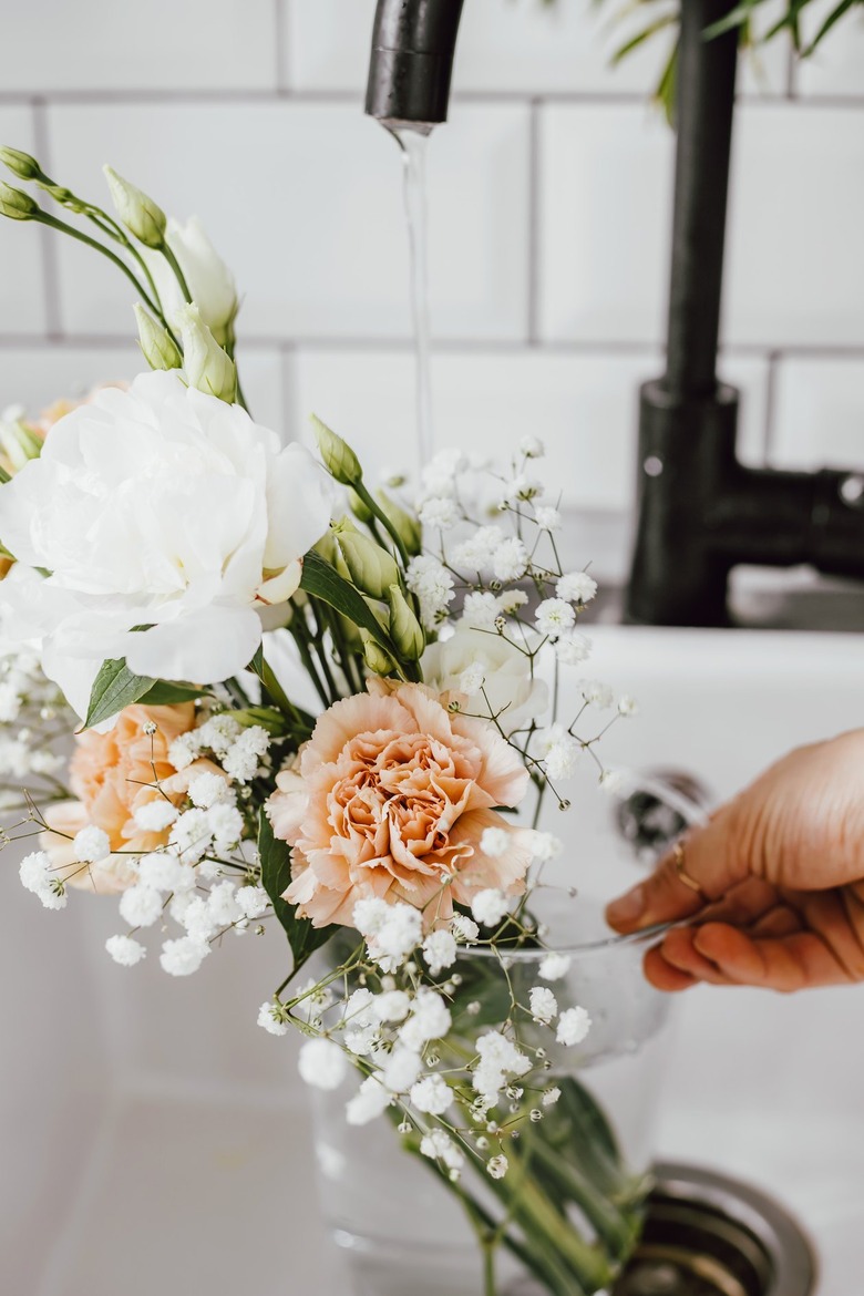 Yes, flowers can be a little finicky — making sure the water is neither too hot or too cold makes a difference in extending the life of your arrangement. To keep your flowers happy, fill the vase with room temperature water. And if possible, use filtered water.