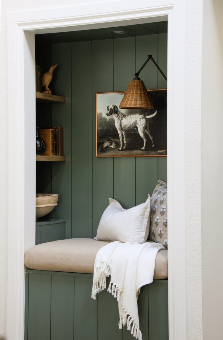 You could use this design idea from Wildflower Home to get the sweetest reading nook. Simply cover one wall in vertical shiplap, and give it a few layers of inky green paint. Going this route will ensure your space doesn't feel overwhelmed by shiplap. But you'll still have an obvious nod to fresh farmhouse style.
