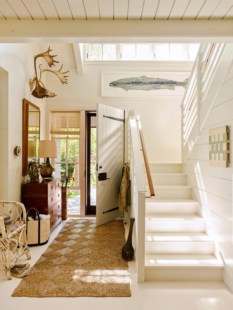 Set the tone for the rest of your house with creamy white shiplap in the entryway or hall. But don't think the simple color means you have to settle for simple decor. Just take a look at this space from G. P. Schafer Architects that was featured on Coco Kelley. To recreate the warm aesthetic, bring in rustic elements that complement the farmhouse feel of shiplap. Try a jute rug, a vintage chair, and maybe even a wood console with weathered charm.