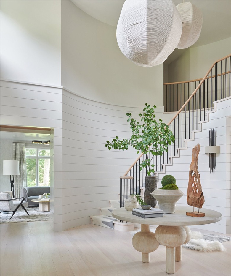 If you have a curved wall in your home, you can still have shiplap, as evidenced by D2 Interieurs here. We love how this entryway combines modern and organic touches to make the shiplap stand out even more. The neutral color palette, however, ties everything together.
