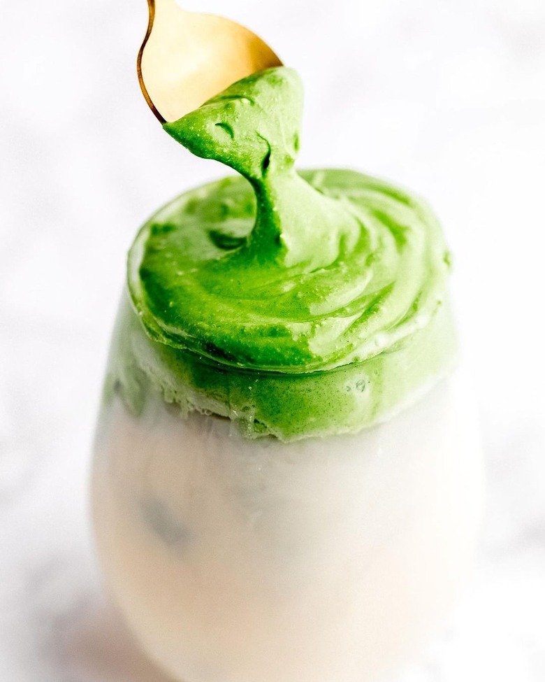 You've heard of dalgona coffee, but what about dalgona matcha? We can't get over how perfect that whipped peak is.