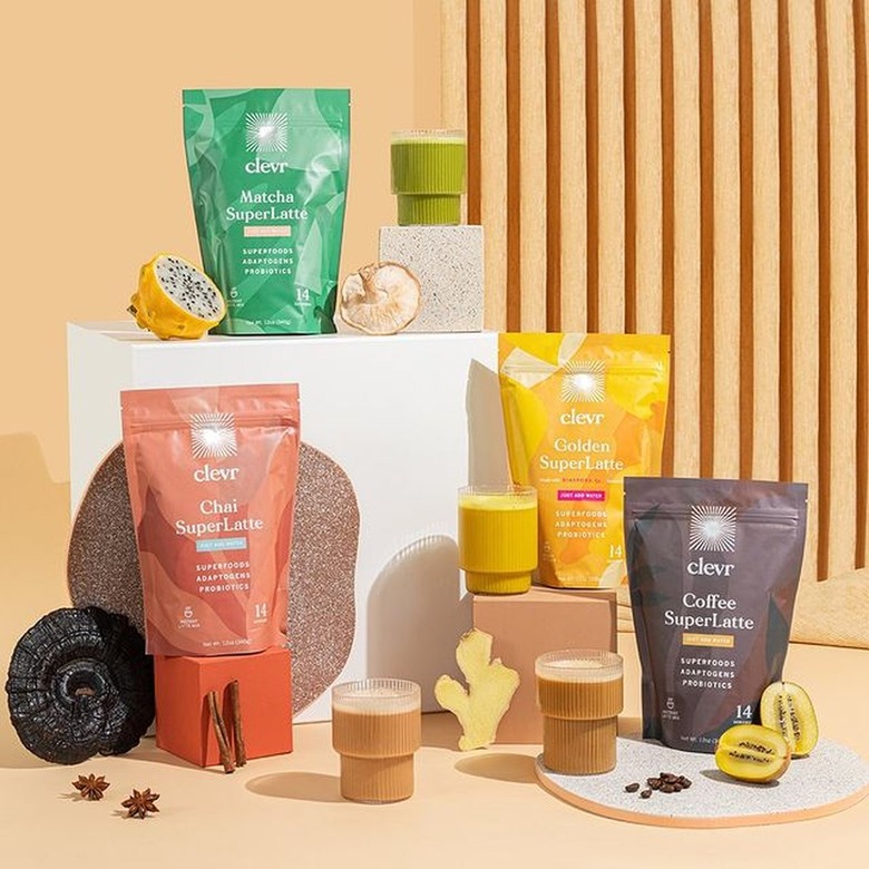 The Chai SuperLatte contains 1,000 milligrams of adaptogens, 40 milligrams of caffeine, 500 million probiotics, and no added sugar per serving. It promises energy, brain fuel, antioxidant activity, sharp focus, stress reduction, a mood boost, and immune support.
