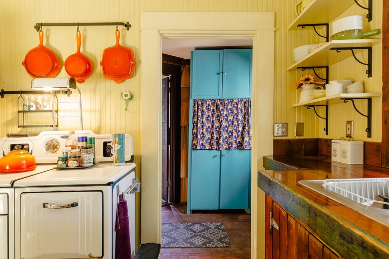 The kitchen wall deserves a vintage treatment, too. Pick a cozy color that reminds you of your grandma's home cooking, and you'll be set. We like the muted yellow here for a look that's vintage but still cheerful.