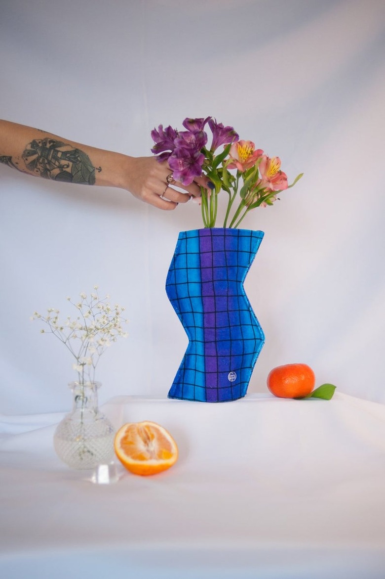 An irregularly shaped vase can make a big impact in a tablescape. This zig-zag style is made of thick velvet fabric and boasts a striking Memphis-inspired grid pattern to boot.