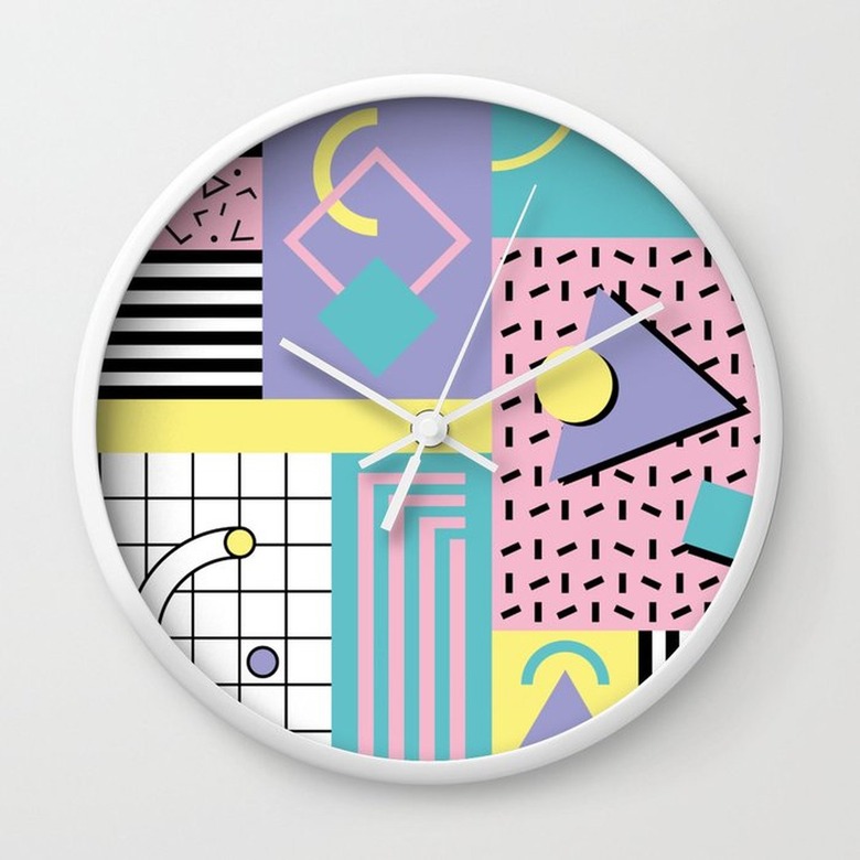 Watching the time pass by is a lot more entertaining with a Memphis Design-inspired wall clock. This splashy patterned wall clock boasts a colorful geometric motif and is available in your choice of a black, white, or natural-hued frame.