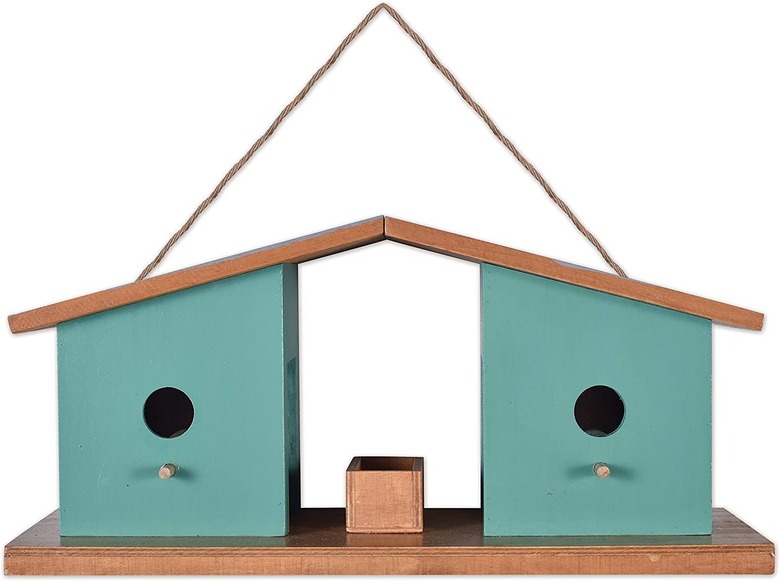 If you thought there was no such thing as an affordable midcentury modern birdhouse then you'd be mistaken. Along with two cutout entryways and a pitched roof, this teal-colored bird duplex offers two separate nooks (and plenty of room) to accommodate multiple feathered visitors.