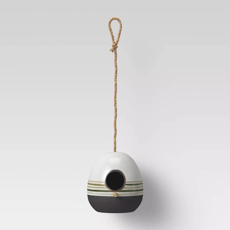 A chic ceramic birdhouse can instantly upgrade your outdoor area while moonlighting as a safe haven for birds. This simple striped design is made of frost-proof ceramic and features a small circular opening that ensures nesting birds feel safe and snug when they're inside.
