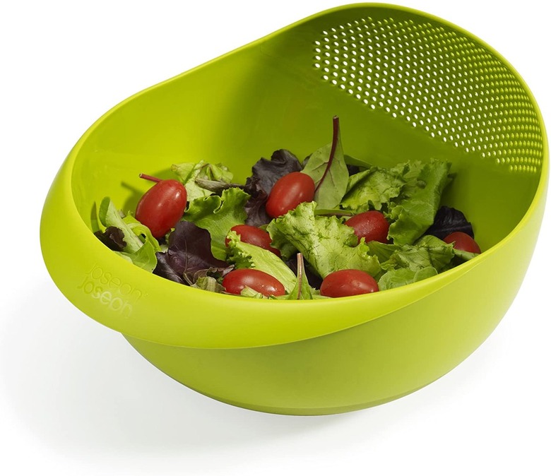 Nothing crowds up a cramped kitchen faster than bulky colanders and mixing bowls. Thankfully, this colorful bowl is designed with an integrated colander, so you can mix, rinse, drain, and serve salads and more in one simple and stylish fell swoop.