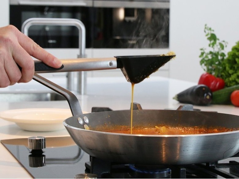 A double-sided spoon that moonlights as a spatula can save valuable drawer space and make stovetop cooking a whole lot easier. This heat-resistant, five-in-one tool features a slotted spoon, solid spoon, spatula, turner, and cutting device, so you can cook to your heart's content with just one single utensil.