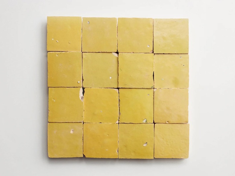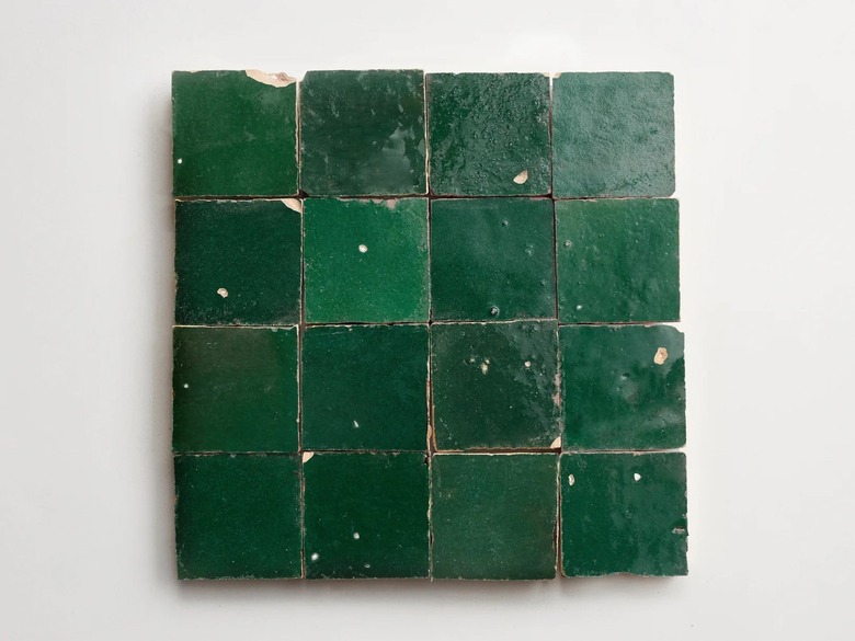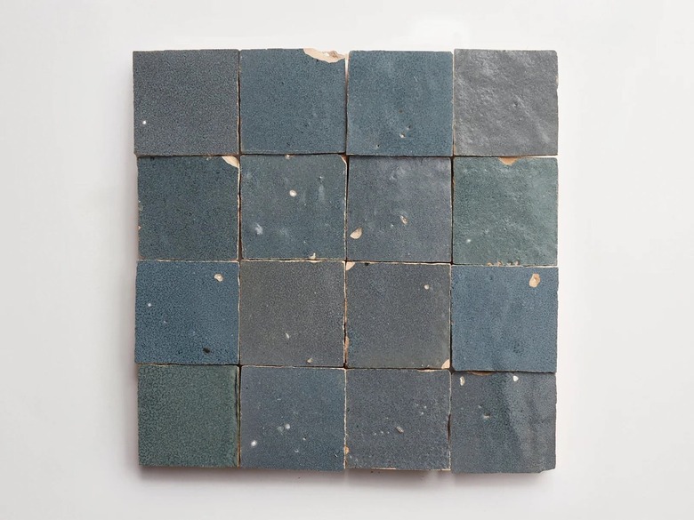 Zellige tile is hand-shaped and made from a special Moroccan clay, fired in a kiln, and glazed with enamel. Its hallmark characteristic is the perfectly imperfect composition that is derived from its handcrafted nature. This means no two tiles will ever be the same and there will always be subtle differences in the coloring — so when they are installed, you won't end up with a completely uniform scheme.