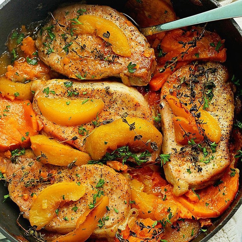 "These maple peach pork chops are filled with sweet and savory flavors that play so well together," writes food blogger Jocelyn. "I even added a layer of sweet potatoes for a full one-pot meal that can be baked or even made over the stove for more ease."