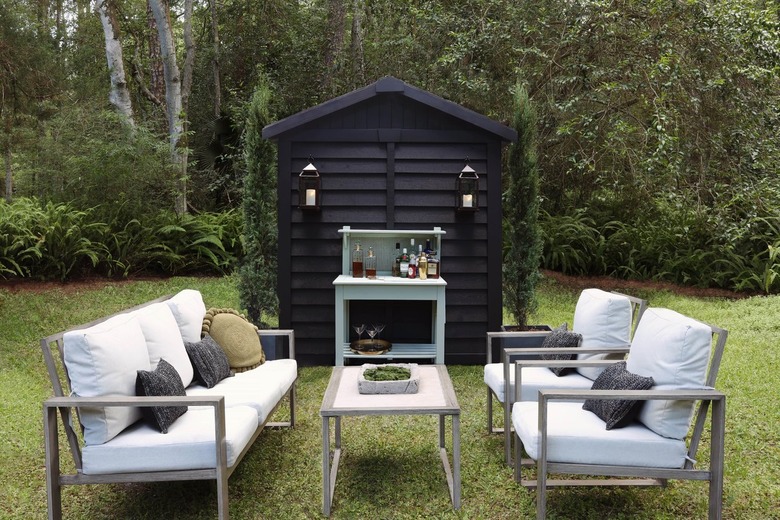 While sheds offer the rather utilitarian function of storage, they can also act as an anchor for a chic outdoor lounge — if you give them the proper design attention. All it takes is a little sprucing up with paint, and you have the perfect backdrop to create a stylish sitting area to welcome guests for drinks or dinner.