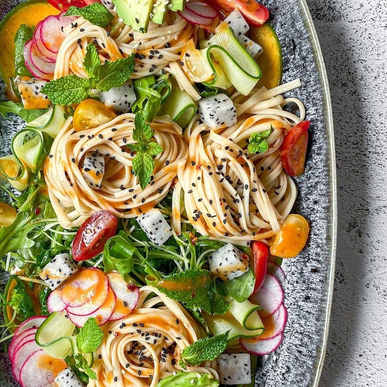 As the temperature rises, consider switching from hot pasta dishes to cold ones to keep the carb-y goodness going all year long. But don't limit yourself to the traditional tomato-olive-mozzarella recipe. Expand your horizons with flavors from all around the world, while keeping down the heat in the kitchen. (It's no-sweat cooking — literally!)