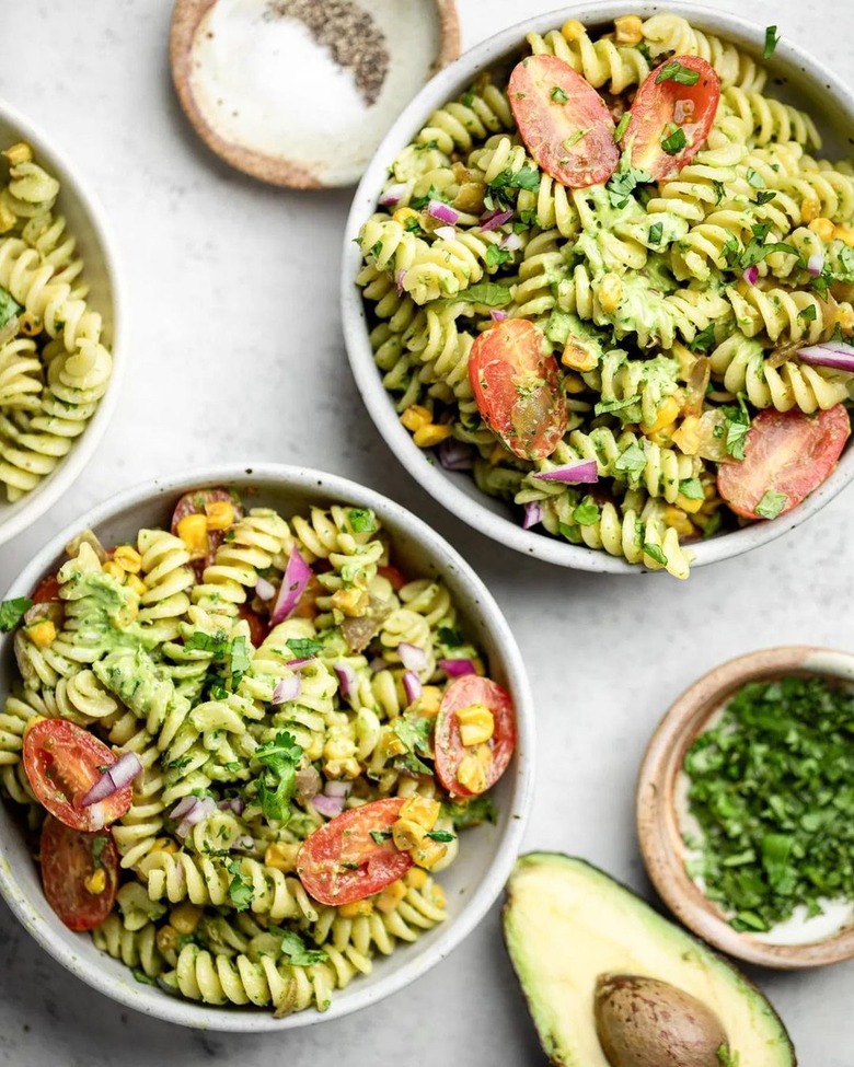 This delicious and healthy pasta salad is gluten-free, dairy-free, and vegan — and it can be made in just 30 minutes. Instead of mayo, it relies on a creamy avocado dressing.
