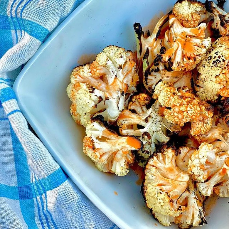 "Cauliflower florets develop a nice smoky flavor by being roasted on the grill, and then [are finished] with a simple buffalo sauce made of butter, garlic, and Franks Red Hot Sauce," writes Robyn, making us drool in the process.