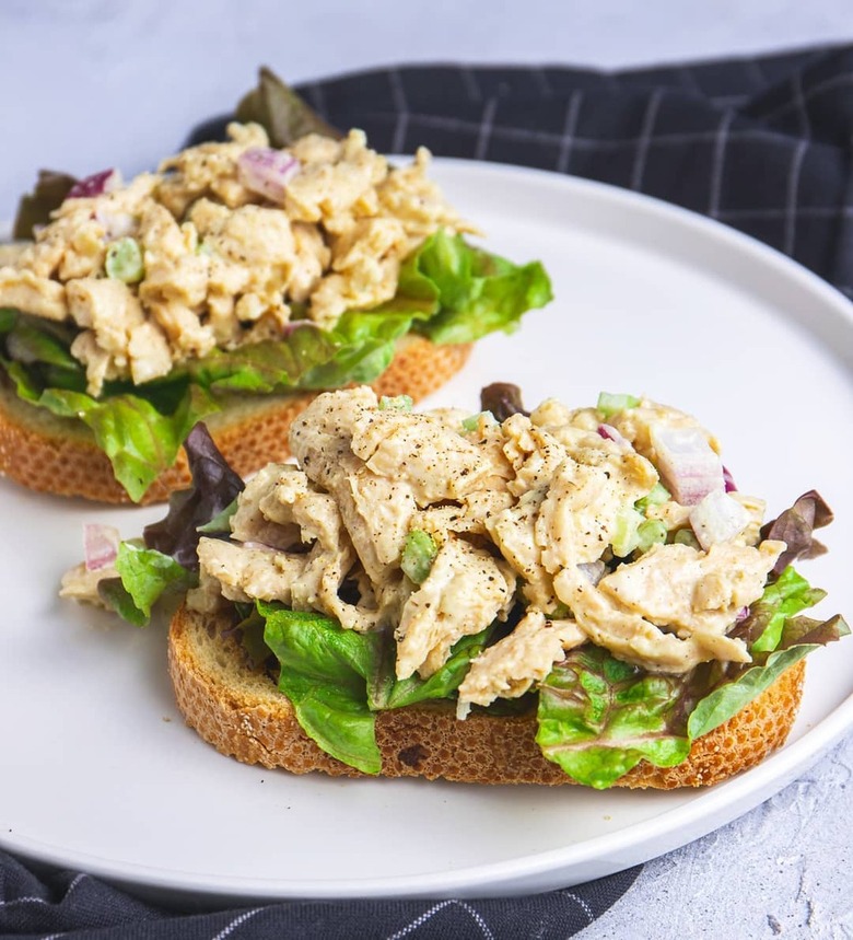 Instead of chicken, use soy curls to make a yummy salad that could be served as a side or in between two pieces of bread. Plus, it only takes 15 minutes to make!