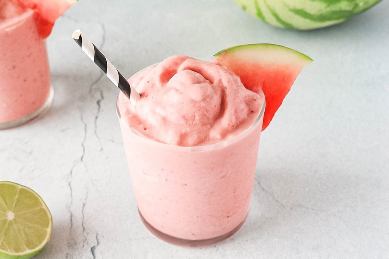 If you're looking for a new way to enjoy watermelon, a whipped watermelon cocktail might be just what you need. Inspired by watermelon whip — a popular soft serve dessert — the beverage is both creamy and refreshing. However, what makes this version unique (and totally drool-worthy) is the addition of rum, honey, and lime juice. These ingredients transform watermelon whip into a boozy milkshake-soft serve hybrid that tastes just like summer.