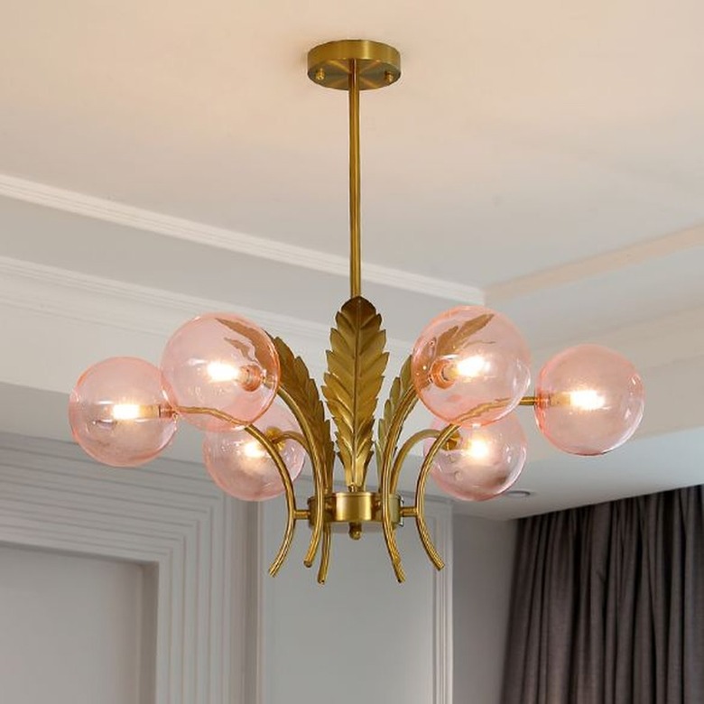 Our pick: Pink Glass Drawing Room Hanging Chandelier with Leaf Décor, $475.84