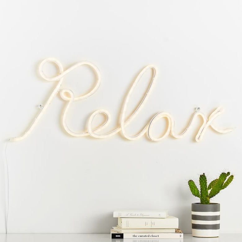 Neon signs come in all shapes and sizes and are often super affordable. Whether you choose a sign with words or one with pictures, express yourself with this fun little light source that doubles as wall art.