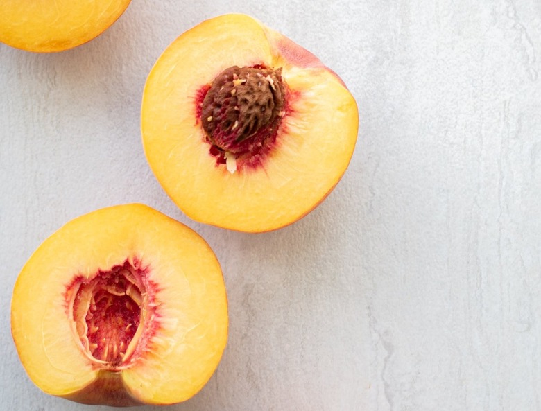 Freestone peaches contain fruit that falls right off of the pit, making it easier for you to prep, snack on, and clean up after. All you have to do is slice the peach down the center and the fruit will easily pull away from the pit. Popular varieties, according to The Peach Truck, include Golden Jubilee, Early Amber, July Prince, and September Snow.
