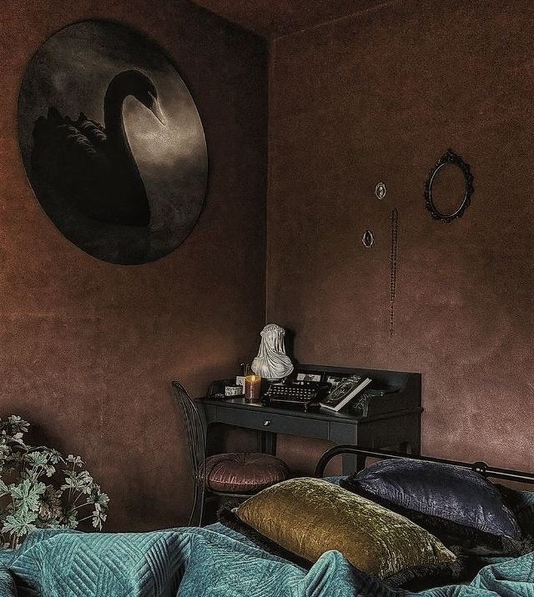 If you've already been enjoying the light colors of spring or summer cottagecore, now's the time to go darker and deeper. Think the dusky gold of falling leaves, rusty earth tones, and spicy herbal hues like saffron and nutmeg, which can easily be incorporated through throw pillows, blankets, vases, and more. These colors will feel especially magical if they stand out against a predominantly white- or cream-colored room, blending the more minimalist cottagecore vibe with an earthy feel.