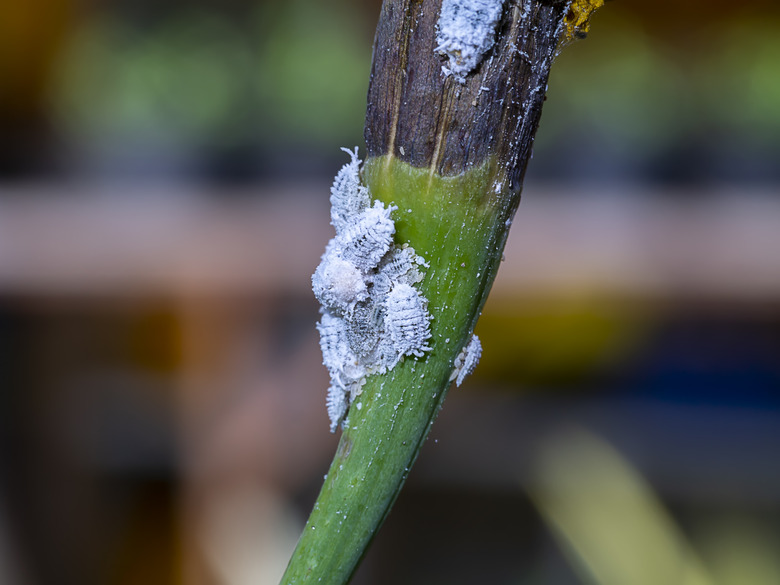 Measuring about 1/8 to 1/4 inch long, mealybugs are slow-moving, soft-bodied insects that can cause a real problem for houseplants. Mealybugs cause the same issues as aphids but are harder to kill. This is because the insects cover themselves in a white waxy film that repels most pesticides.