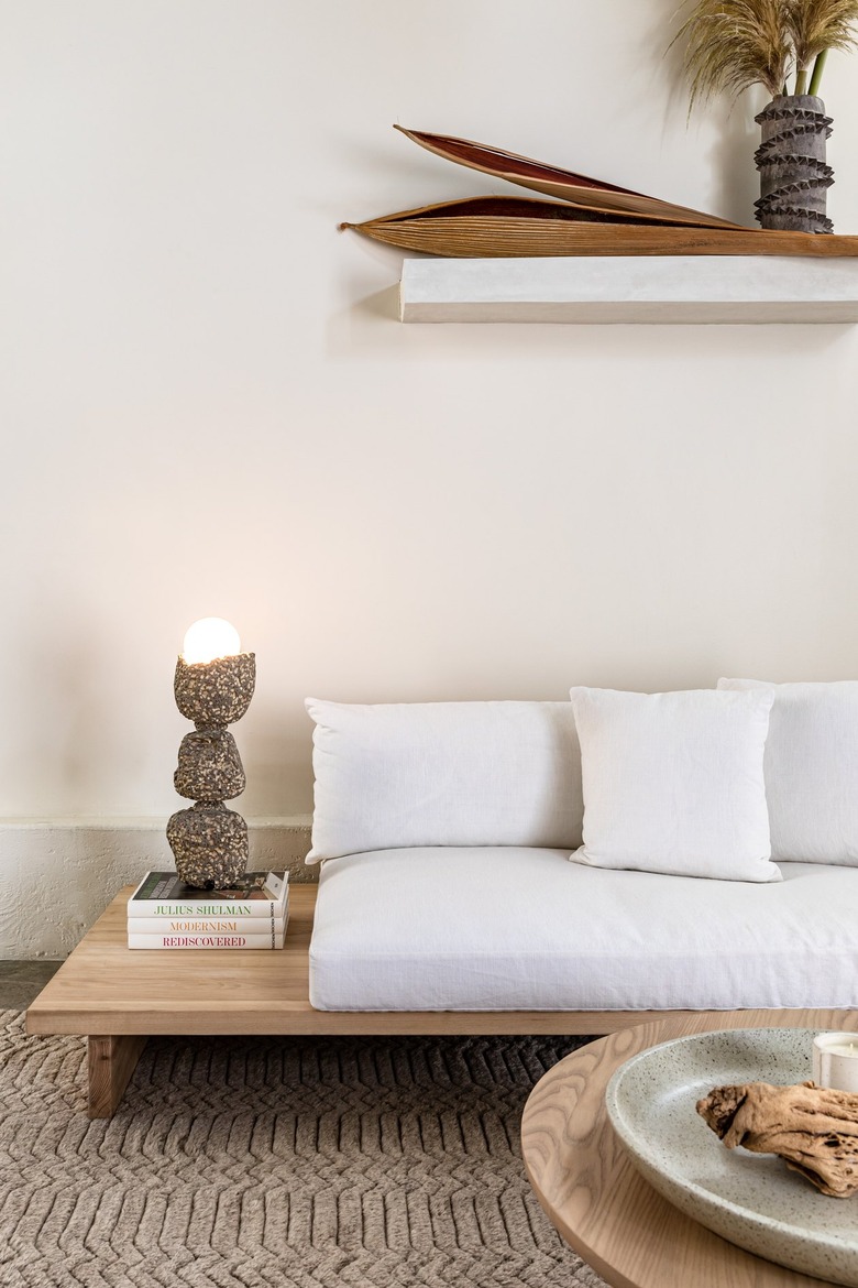 Where to even begin? I guess I have to start with the optics. This couch is simply stunning. From the rich wood to the non-traditional design, it's picture-perfect. My favorite part is definitely the attached side table — it's just so innovative. The Muir Sofa is subtle, yet striking, and definitely statement-making.