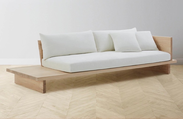 Maiden Home's Muir Sofa is an all-time favorite here at Hunker. We actually have one in our beloved Hunker House, which our editor describes as "a modern masterpiece unlike anything we've seen before ... sleek, original, thoughtful, and somehow still fits the most important criteria: comfort." The rich wood frame adds an elevated feel while simultaneously doubling as a side table for a practical twist on a classic.