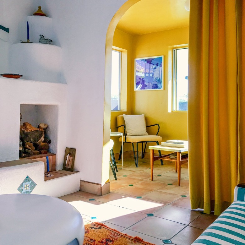 This rosy paint color will turn any living space into an eclectic bohemian dream. Focus only on the ceiling or follow the lead of The Otto House and extend the paint down the walls a few inches for a cool look that will define your living room.
