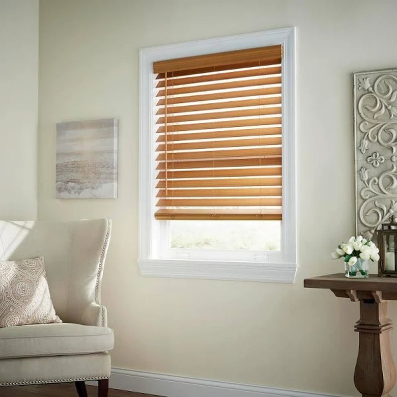 If you're putting wood blinds in a bathroom or other high humidity area, opt for faux wood rather than the real thing. Faux wood resists moisture much better than the real thing and may also prove more resistant to scratching, cracking, and warping. Genuine wood blinds clean up easily with a dust rag, but you can take faux wood outside and hose it down as often as you need.