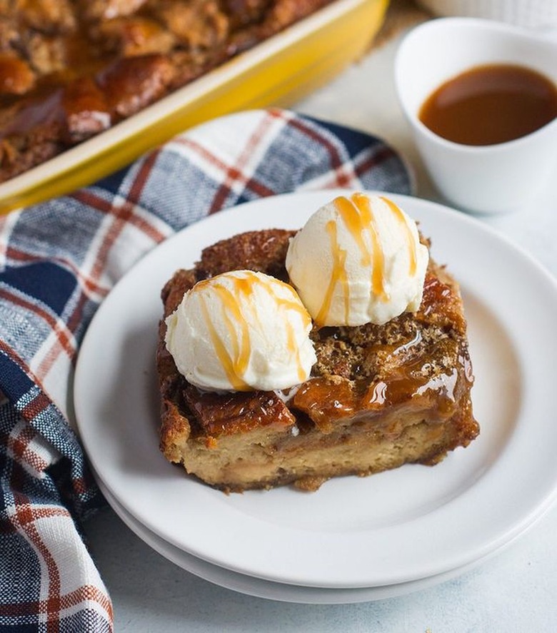 Made with challah bread, caramel drizzle-flavored coffee, and cinnamon, this bread pudding takes less than one hour to make (and most of that time will be spent baking it!).