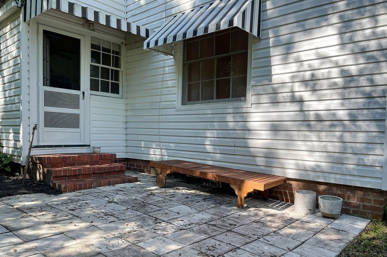 Weathering had certainly gotten the best of this porch space, leaving behind an unsightly build-up of mildew, weeds, and leaves. And the intense summer heat wasn't exactly kind to the potted plants either, essentially reducing them to shriveled stems. In other words: The area was not exactly an inviting place to read and relax while taking in the cool autumn air.