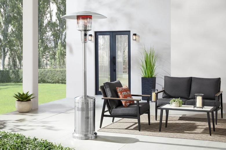 Propane patio heaters are more portable and convenient than natural gas options since they don't have to be connected to a gas line. But they do require propane tanks. "These heaters usually feature a basic shape and a larger base that houses the LPG (liquefied petroleum gas) tank," Elkins tells Hunker. "The LPG tank connects to removable propane tanks, which must be purchased separately as needed."