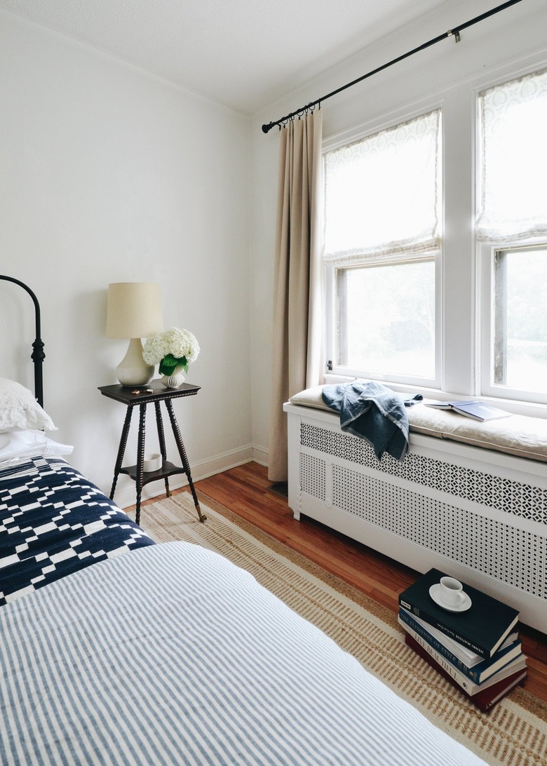 Like the idea of a radiator cover, but don't want to spend loads of cash? Follow the lead of Erin from Francois et Moi and breathe new life into an old one by turning it into a window bench. This approach might take a little bit of time and patience, but eventually, you'll be able to find one that works for you and your space. Try looking for a gently used radiator cover online at Facebook Marketplace or Craigslist or IRL at local yard sales and thrift stores.
