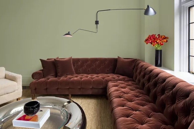 Not one, but three paint brands have chosen a muted green for 2022. Farrow and Ball highlighted Breakfast Room Green (a soothing neutral green) as a 2022 trend prediction, while Benjamin Moore picked October Mist (a relaxing silver-green) for its 2022 Color of the Year. Finally, PPG selected Olive Sprig — a calming gray-green — for its 2022 Color of the Year (shown here) and Sherwin-Williams selected Evergreen Fog. For a brighter option, you could also go with Glidden's green choice: Guacamole.