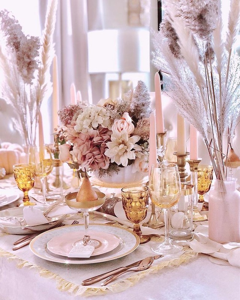 If you're not a fan of traditional fall decor, follow in @decoratordiva1's footsteps by replacing pumpkins with pears and pampas grass. As for the color scheme, the creator went with blush pink, white, gold, and brown to create something you wouldn't ordinarily expect for fall.