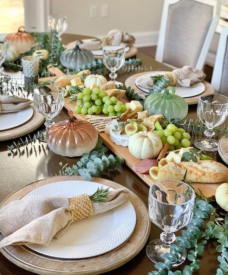 Aside from the fact that they incorporated a cheese board into their table decor, we love how @itsmek8bb welcomed in the green of Mother Nature. The eucalyptus paired with sprigs of rosemary and luscious green grapes is absolutely genius.