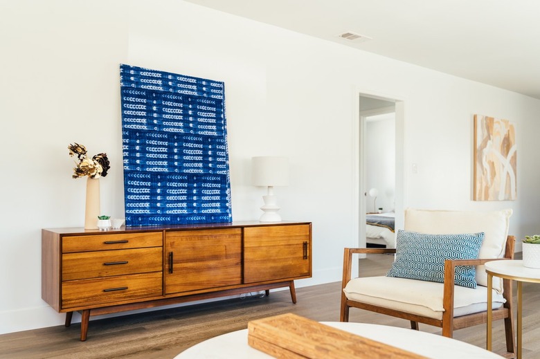 If your living room is already chock-full of furniture and more, it can be hard to see past all of that stuff and visualize a new design. According to designer Kelsey Haywood, one way to approach this problem is to clear the room completely. "Once the room is empty, put some painter's tape down on the floor to play with dimensions and layout. You'll be surprised what a difference this step makes." Although this can be a bit of a hassle, it will act as a clean slate so you can see the potential of your space. You can easily move the tape around until you land on a layout that feels right for you. And let's face it, moving tape is way easier than moving a couch and heavy cabinets over and over.
